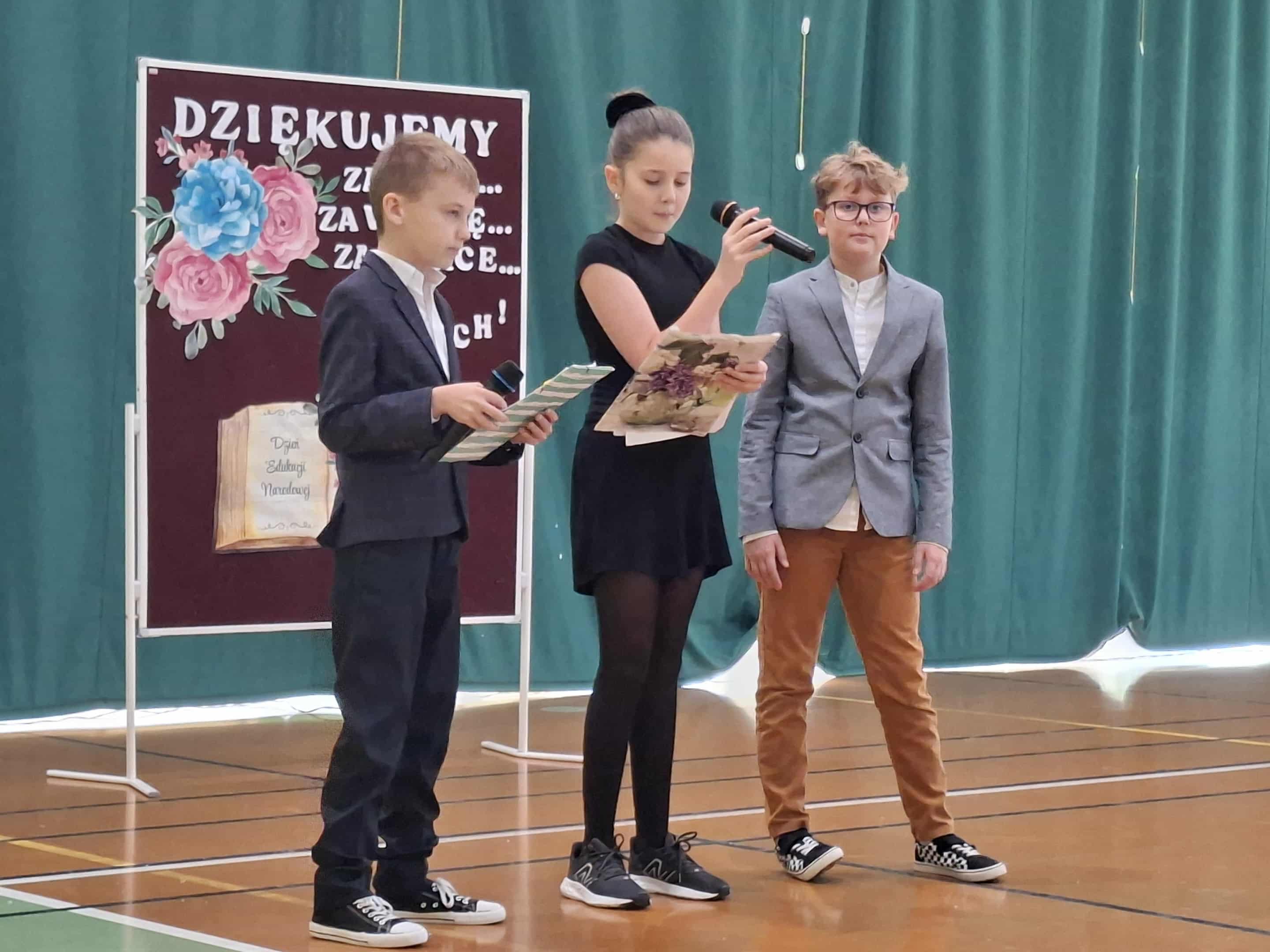 p. Grażyny Smutek, p. Marzeny Hulewskiej, p. Piotra Zganiacza. Występ miał charakter Koncertu Życzeń, w którym uczniowie podziękowali za trud włożony w nauczanie i wychowanie, a płynące z serca życzenia przekazali słowami piosenek i wierszy.