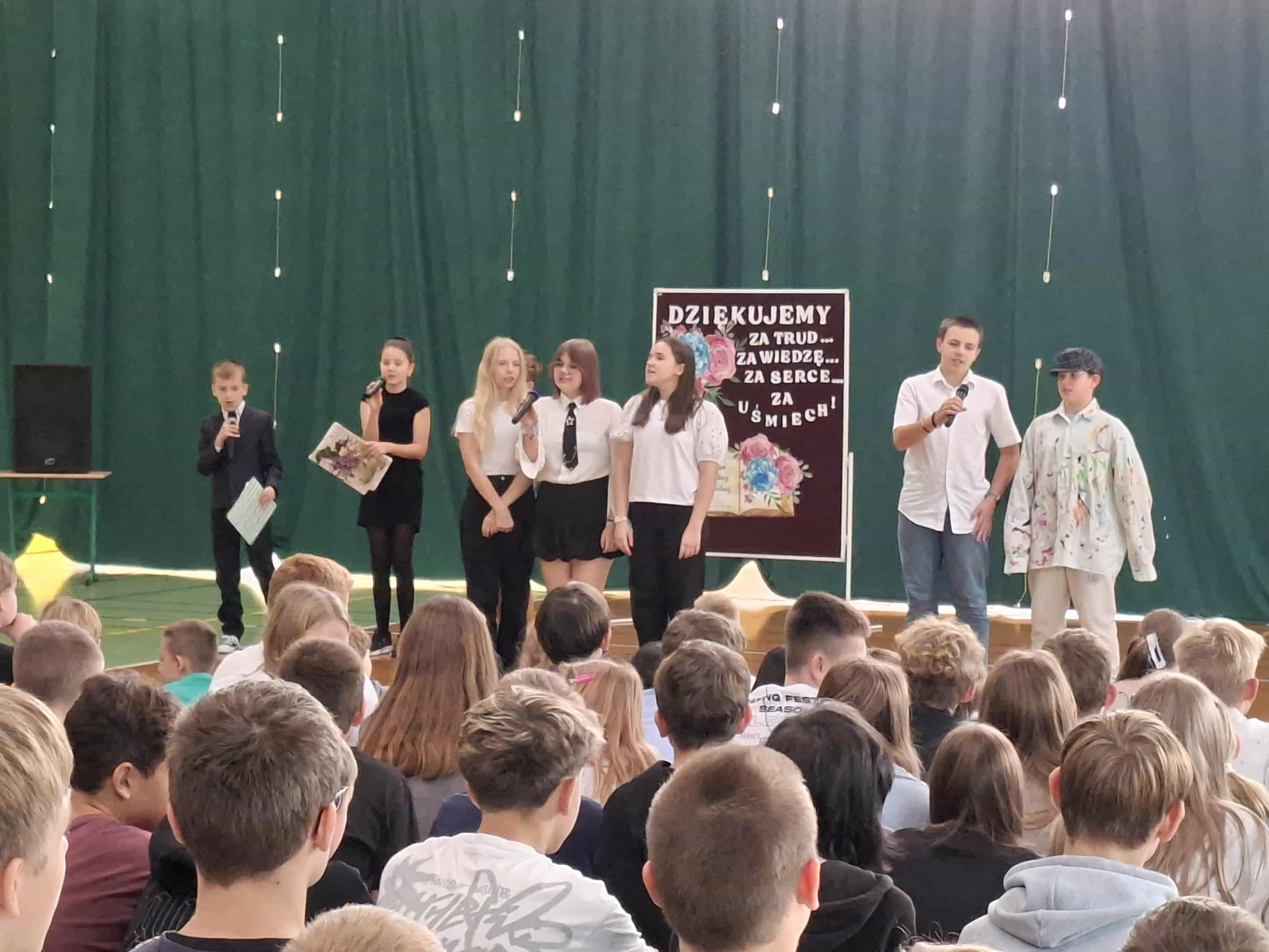 Z tej okazji 13 października 2025 roku cała społeczność naszej szkoły spotkała się na uroczystej akademii. Przygotowali ja uczniowie z klas 4-7 pod kierunkiem nauczycieli: