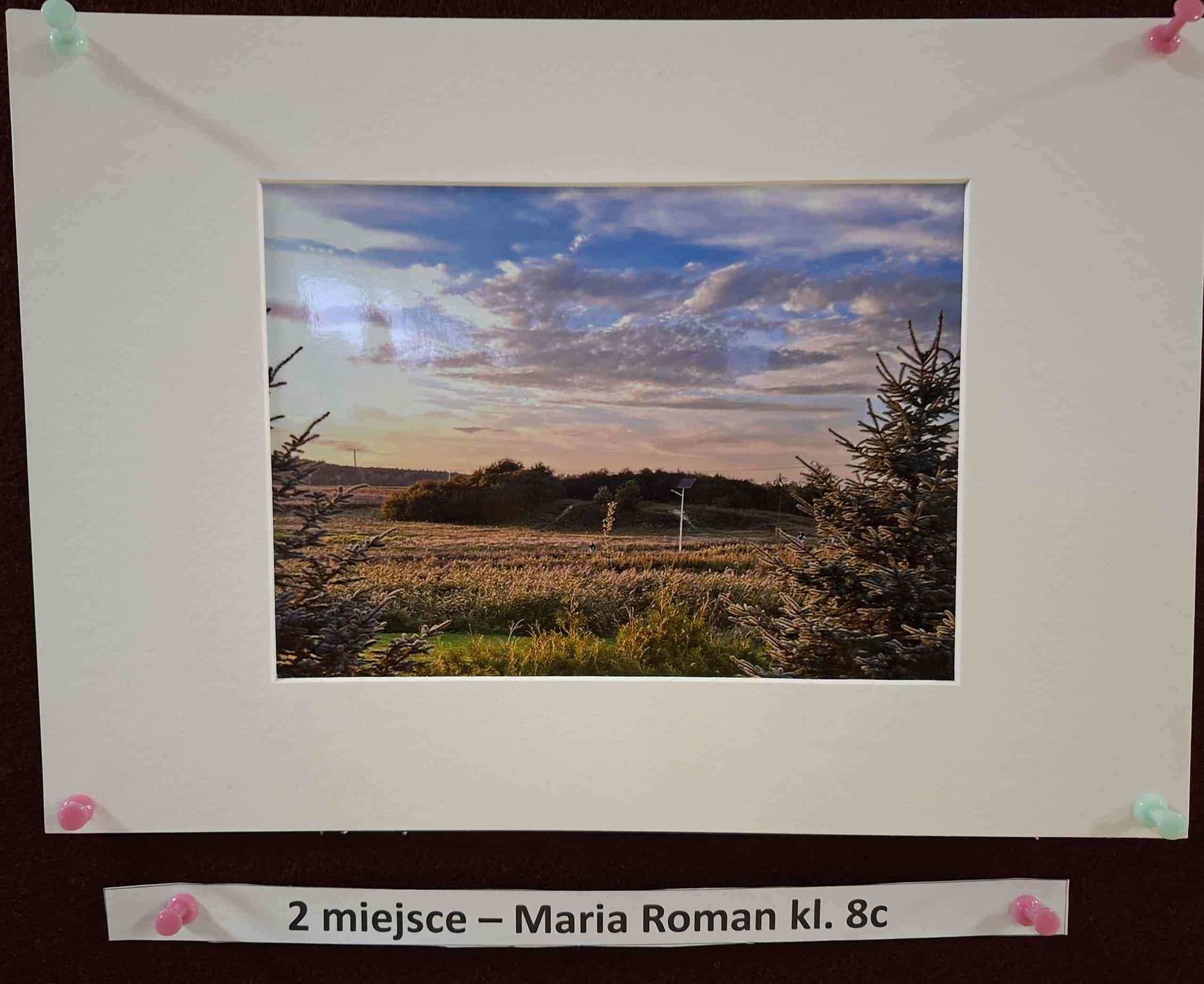 za nastrojowe zdjęcie przedstawiające krajobraz Konstantynowa w ciepłych barwach zachodzącego słońca.3 miejsce – Hanna Knapik, kl. 7a oraz Zuzanna Micielska, kl. 8b