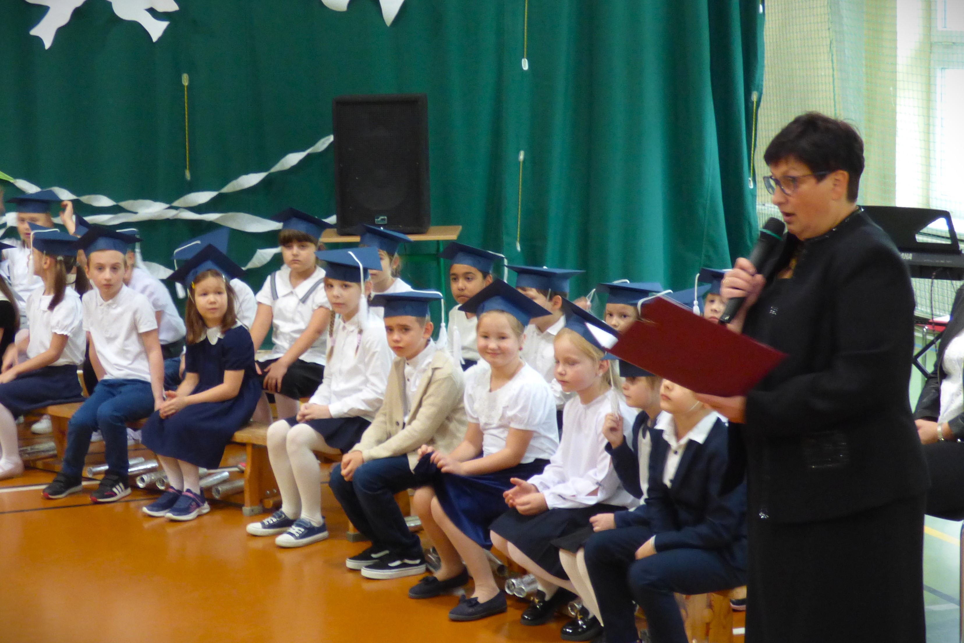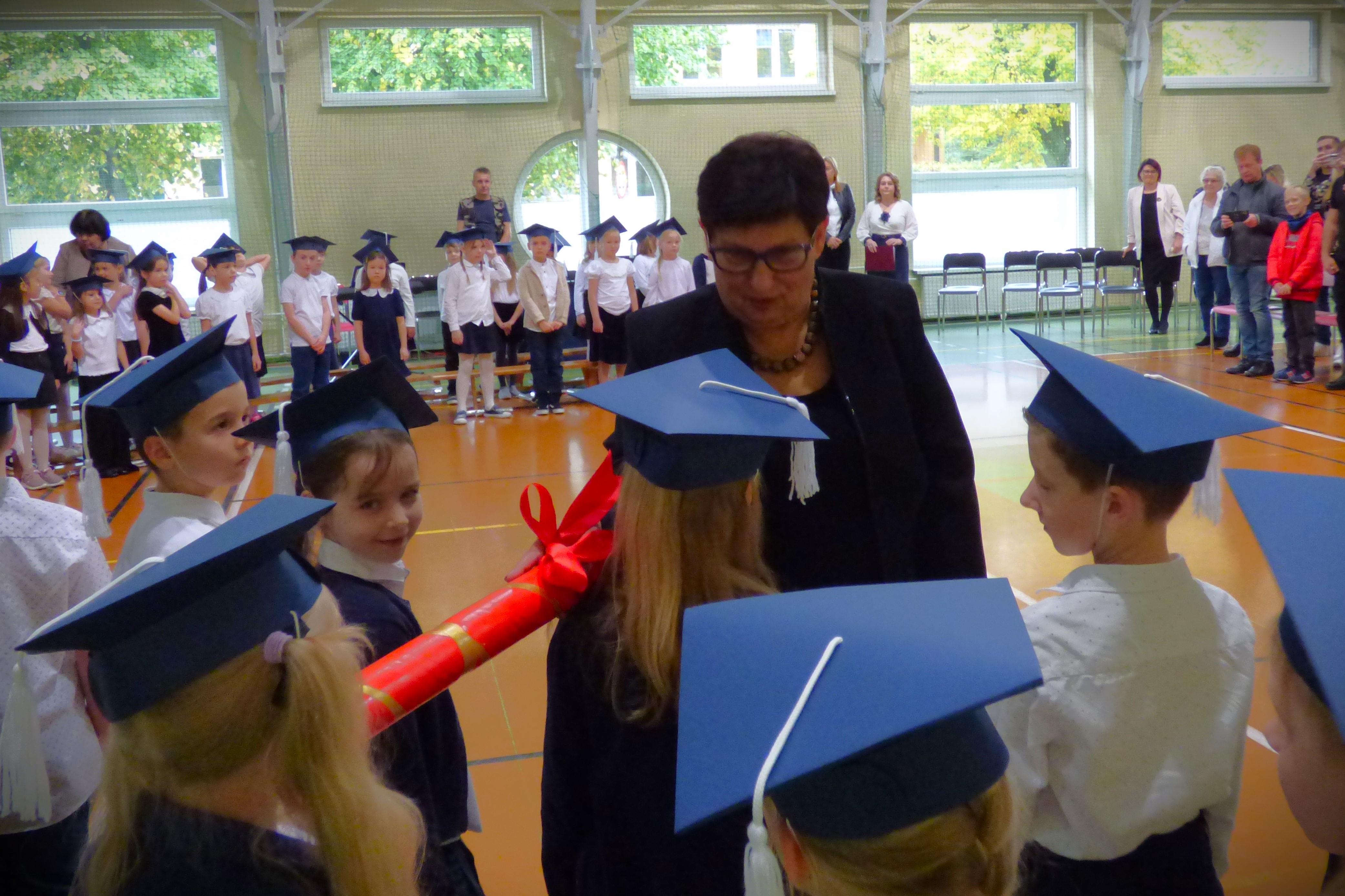 Pani Dyrektor Katarzyna Olejniczak, która czarodziejskim piórem pasowała dzieci na pierwszaków,