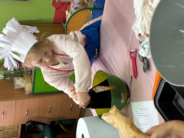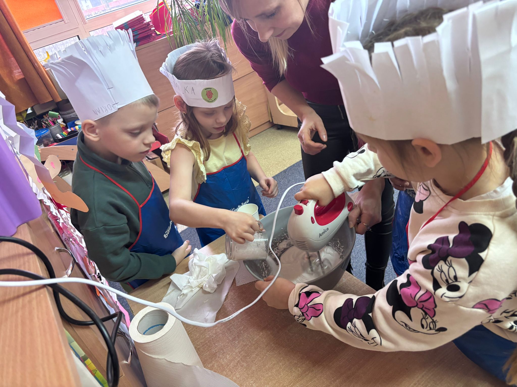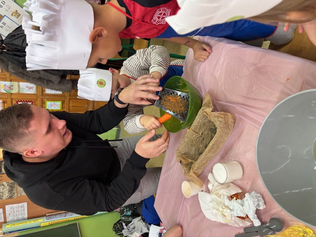 W ruch poszły obieraki, tarki, miksery. Liczyli, odmierzali, przeliczali, miksowali. Rodzice dzielnie wspierali swoje dzieci w tym wyzwaniu. Wielka radość nastała, gdy salę wypełnił długo wyczekiwany zapach świątecznego ciasta i to w dodatku samodzielnie wykonanego.