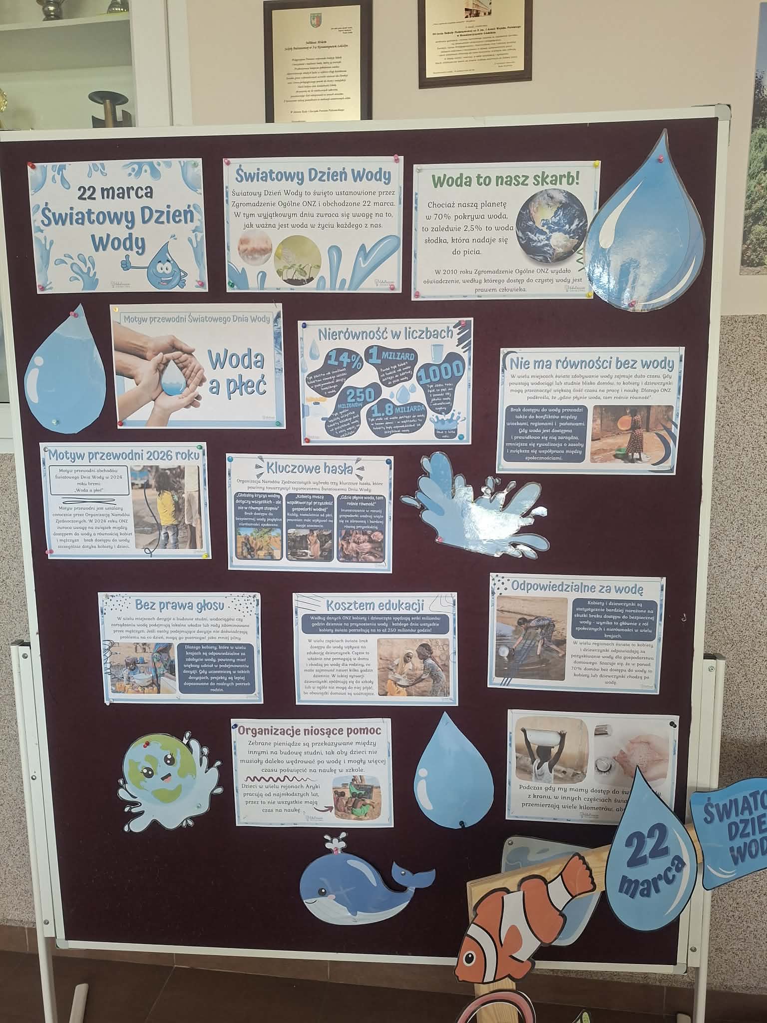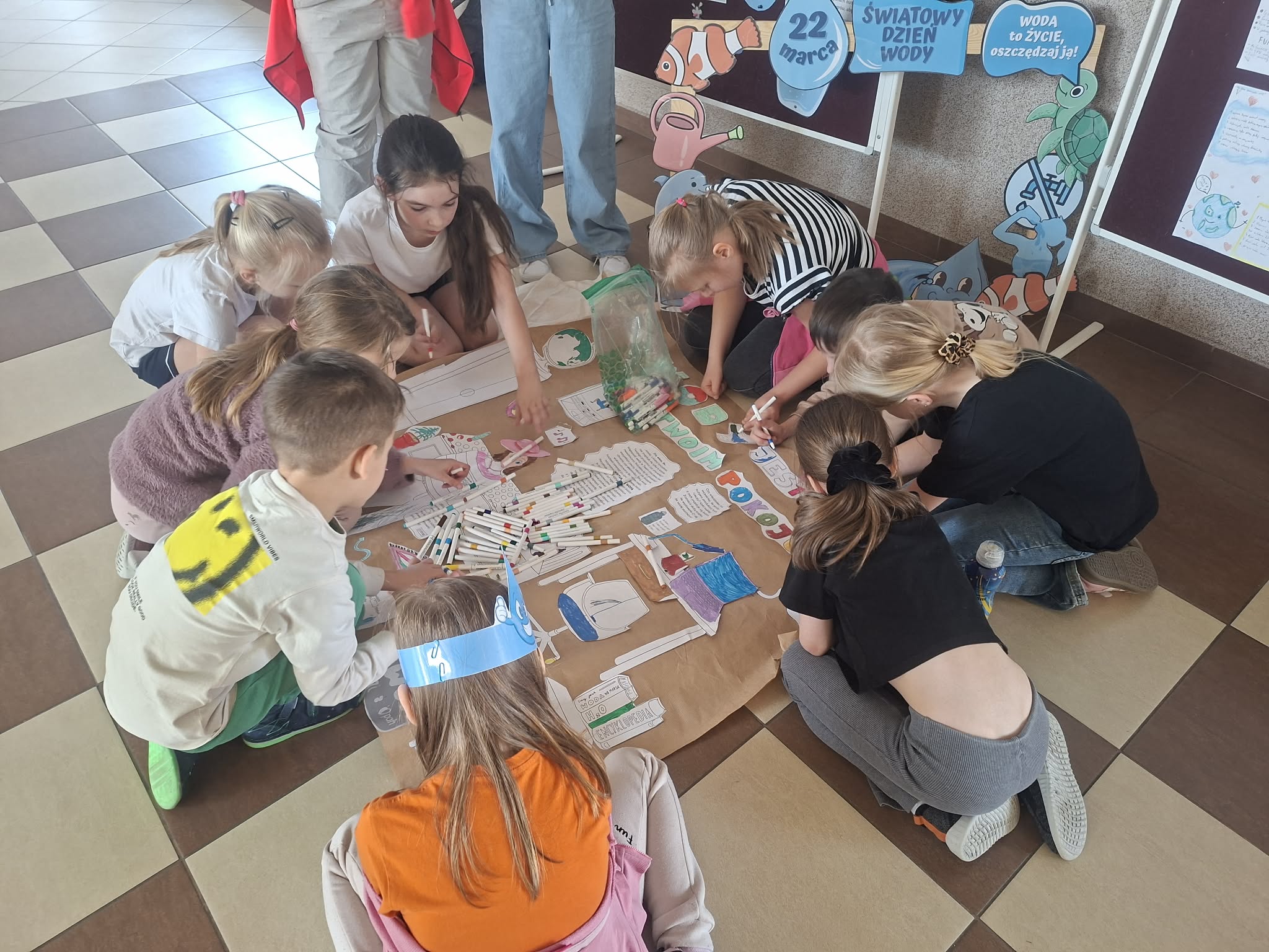 Uczniowie pracowali w grupach, tworząc plakaty edukacyjne oraz przestrzenne prace plastyczne związane z tematyką wody. Powstały także gazetki szkolne oraz dekoracje korytarzy, które przypominały całej społeczności szkolnej, jak ważna jest troska o zasoby wodne.