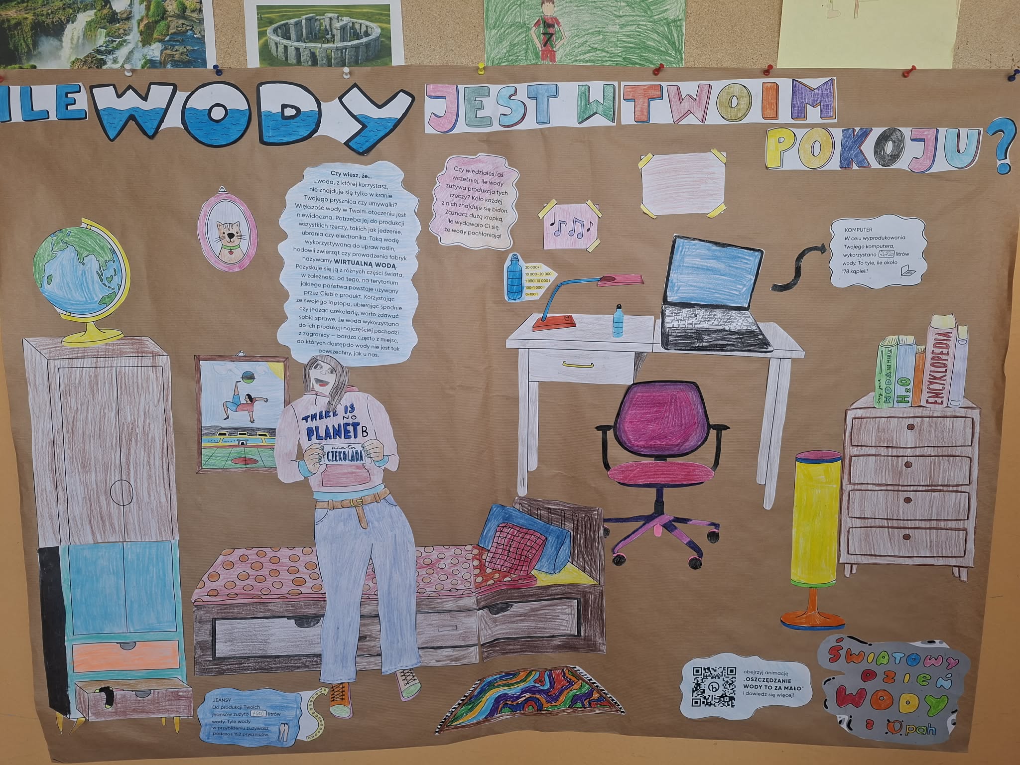 Szczególnym zainteresowaniem cieszyły się działania projektowe, podczas których uczniowie analizowali zużycie wody w codziennym życiu – m.in. odpowiadając na pytanie: „Ile wody jest w Twoim pokoju?”.