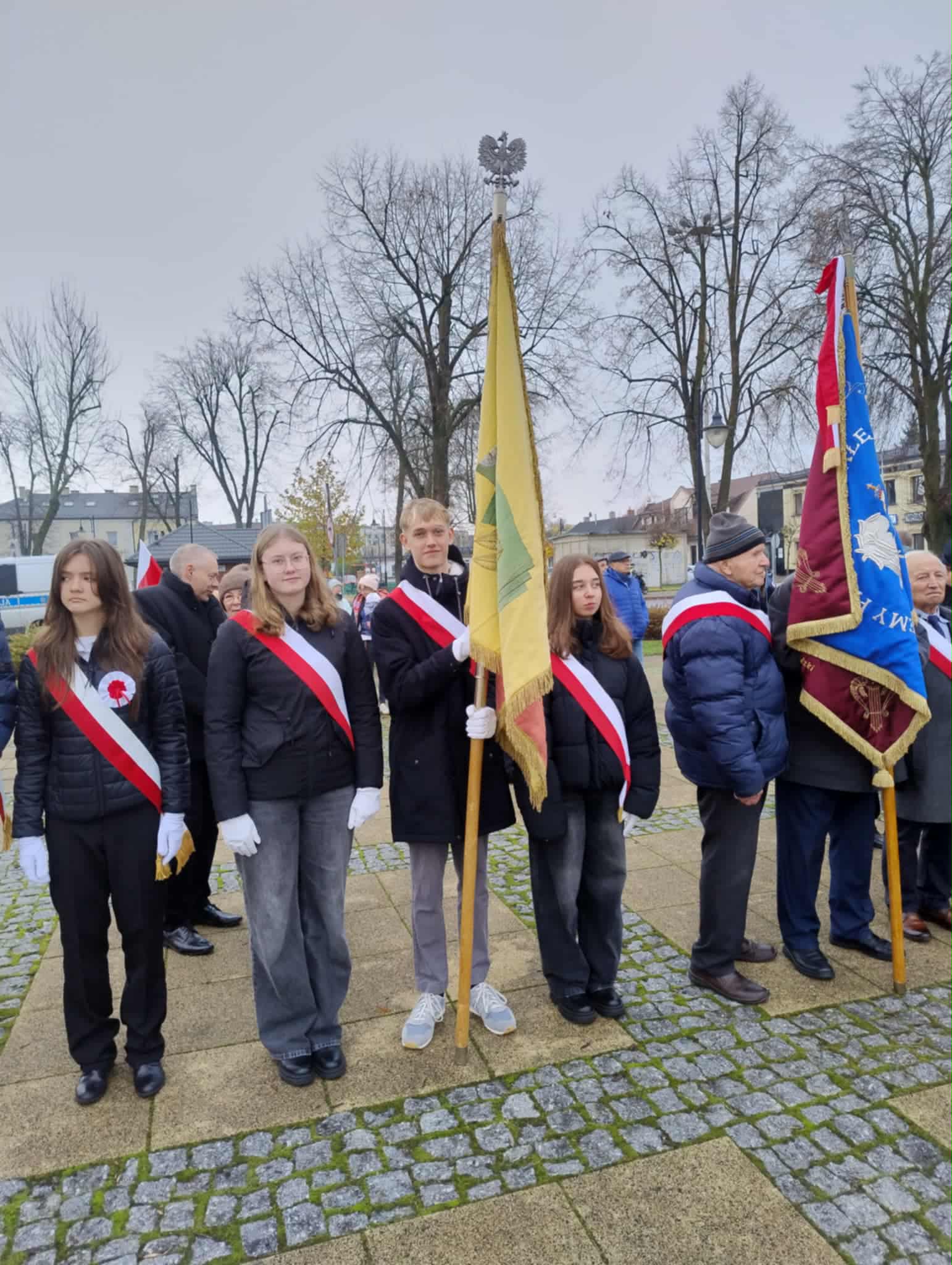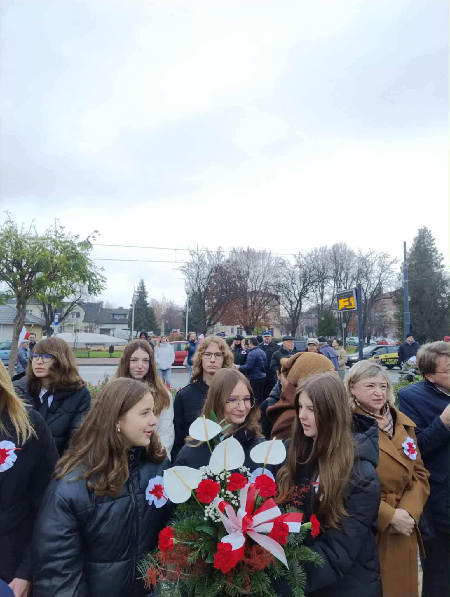 Naszą szkołę reprezentowali uczniowie klas starszych, poczet sztandarowy oraz opiekunowie. Młodzież godnie zaprezentowała się podczas całej ceremonii, z dumą nosząc narodowe symbole oraz biorąc udział w składaniu kwiatów.