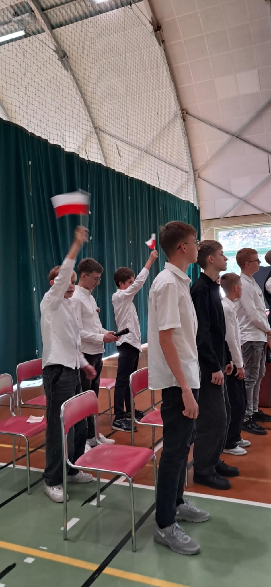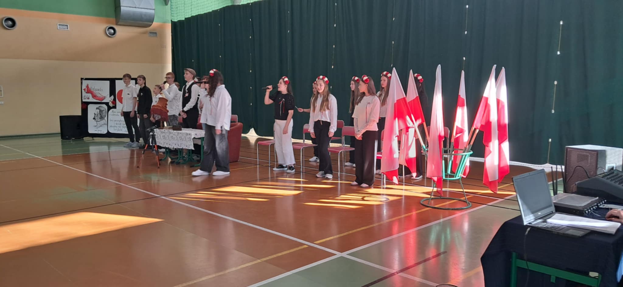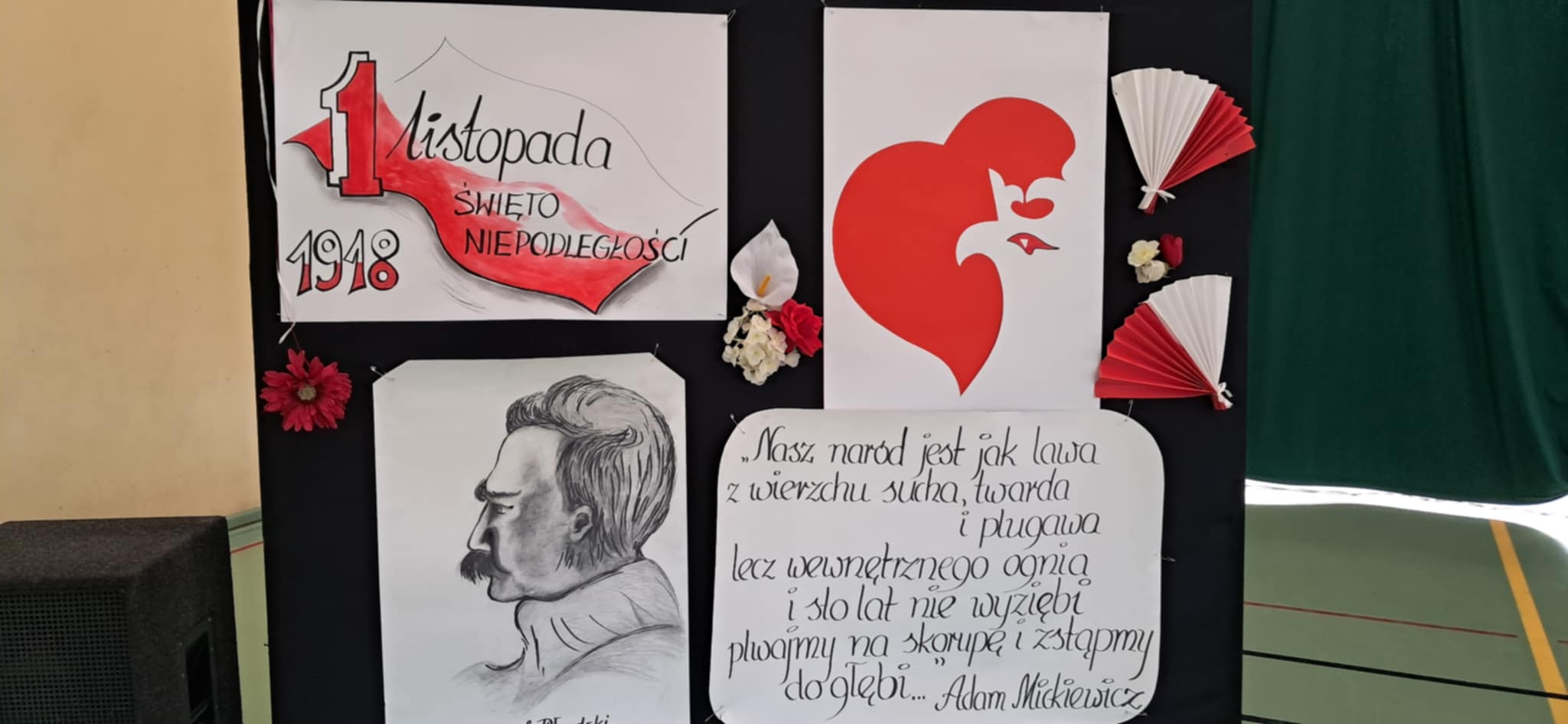 W piątek, 7 listopada, w naszej szkole odbył się uroczysty apel z okazji Narodowego Święta Niepodległości. Uczniowie z klasy 7a i uczennica z klasy 7b pod kierunkiem pani Marzeny Kopij w przystępny i ciekawy sposób, w montażu słowno – muzycznym, przypomnieli najważniejsze wydarzenia z historii Polski oraz znaczenie słów: wolność, ojczyzna i patriotyzm. Uroczystość była pięknym wyrazem pamięci o tych, którzy żyli w tamtych czasach i walczyli o wolność naszej Ojczyzny.