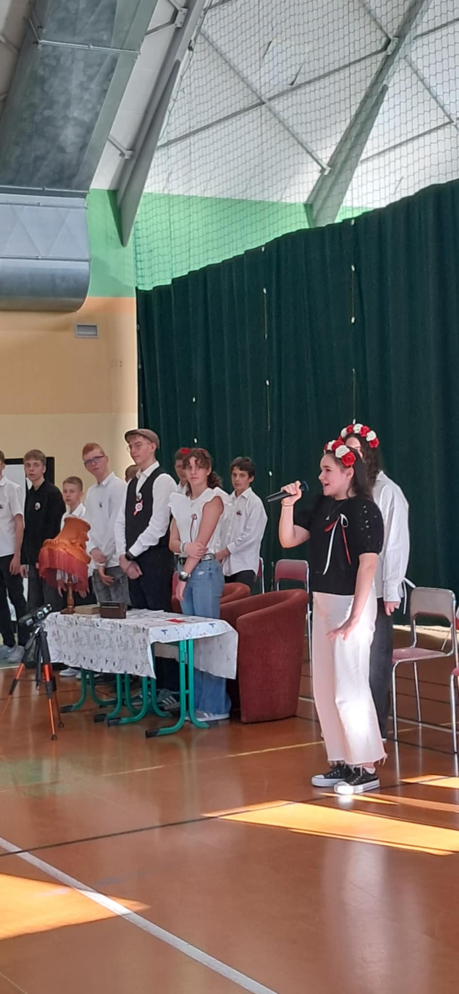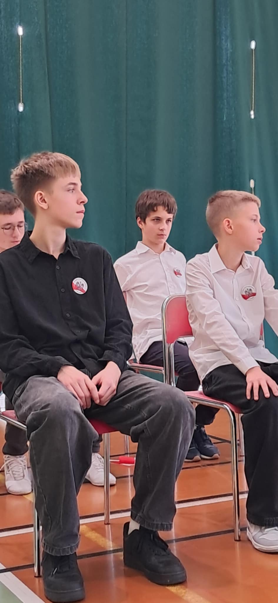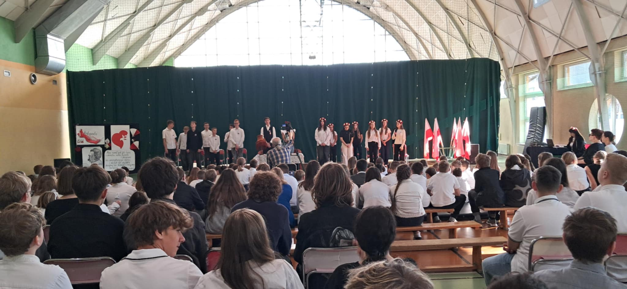 W piątek, 7 listopada, w naszej szkole odbył się uroczysty apel z okazji Narodowego Święta Niepodległości. Uczniowie z klasy 7a i uczennica z klasy 7b pod kierunkiem pani Marzeny Kopij w przystępny i ciekawy sposób, w montażu słowno – muzycznym, przypomnieli najważniejsze wydarzenia z historii Polski oraz znaczenie słów: wolność, ojczyzna i patriotyzm. Uroczystość była pięknym wyrazem pamięci o tych, którzy żyli w tamtych czasach i walczyli o wolność naszej Ojczyzny.