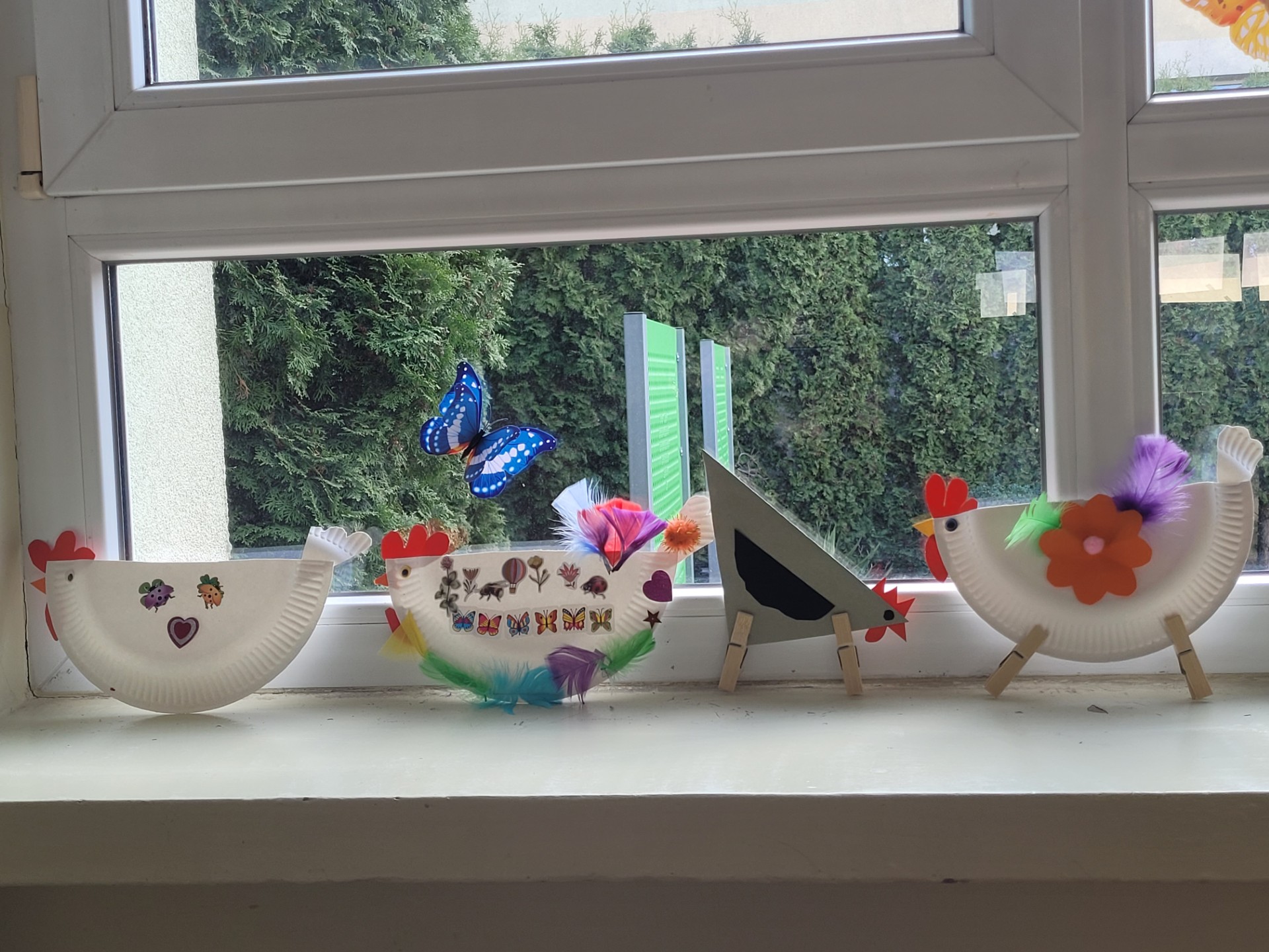 Na parapetach zakwitły kolorowe kwiaty z papieru, pojawiły się wesołe kurczaczki, koguciki i wielkanocne dekoracje, a przestrzeń świetlicy wypełniła się feerią barw. Nie zabrakło także wiosennych łąk, motyli oraz ręcznie wykonanych ozdób, które zachwycają starannością i kreatywnością.